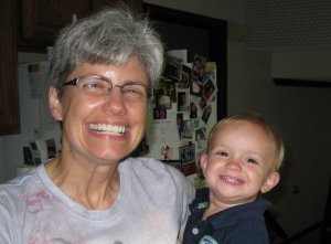 After the walk, we stopped at a local coffee shop. There was a man working at his computer and conducting business on his cell. Gavin waved enthusiastically, and the man smiled and waved back as he talked on the phone; you just cannot deny that sweet face. We got some treats and sat on couches facing each other, meanwhile Gavin climbed onto the table in-between. It was about 18 inches tall, perfect Gavin height. We got him off of the table and distracted with some grapes. I had a light green iced cake ball, about the size of a fruit ball. I took a bite and held it out for Gavin to try while listening to Cathy. I looked down, and there was no cake in my hand. I asked Cathy if he she had seen him put the entire piece in his mouth; she had not noticed. We looked at Gavin, who just looked at us like, “What’s up?” There was no noticeably large bite bulge, so we searched the floor under the couches and table, no cake ball. Cathy said not to worry about it, that the cake and icing would just melt. Well, I had no idea how correct she would be. A few minutes later, Gavin gave us a big grin, except instead of teeth, he showed us a big wad of cake. We giggled, and I watched to make sure he was managing the chewing process without difficulty. He seemed to be handling it just fine. Then, Gavin headed for the hallway. We called him back; he stopped, turned, and giggled, letting out a light green eruption of foam and drool. We laughed so hard tears came to our eyes. That made him laugh and erupt even more green, lava-like foam. He looked like a science fair exhibit! Cathy laughingly asked if I liked ‘see’ food; I doubled over with laughter. I wiped his mouth, and he finally consumed the last of the cake ball.