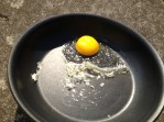 - I tried to fry the proverbial egg on the sidewalk. The outside edges got crispy, and after an hour the white and yolk congealed but were not totally cooked. Who knows what another hour would have brought, but I got kind of bored and I needed to go to the grocery, anyway. I think I waited too long into the day; the sun wasn’t directly overhead. Yeah, that must have been it.
